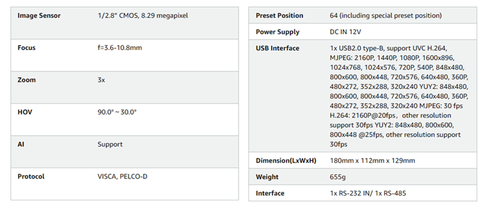 - Compatible with VISCA,Pelco-D,Compatible with multivariety conference software images and ptz controls