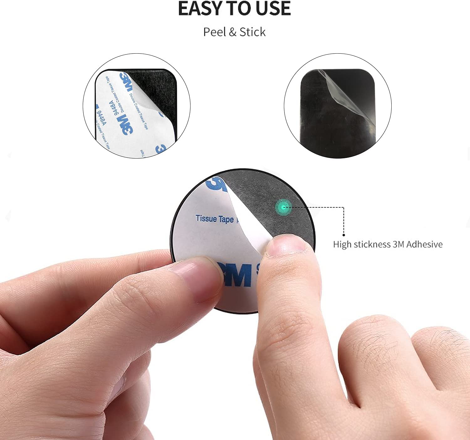 • Stick to the back of your phone or put it between your phone and the case。The 3M Adhesive magnetic plate has strong adhesion, which can keep your equipment stable and safe during driving.