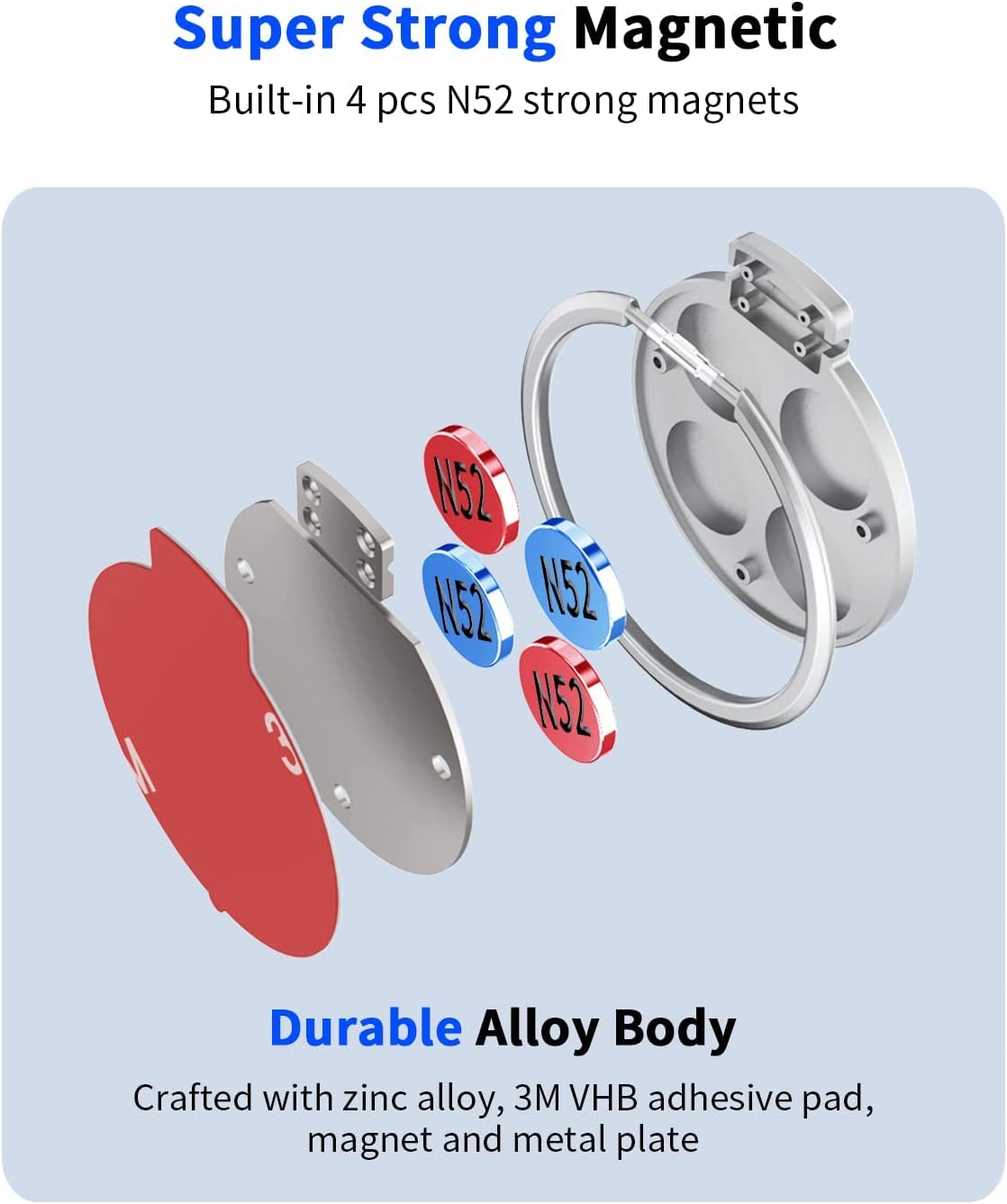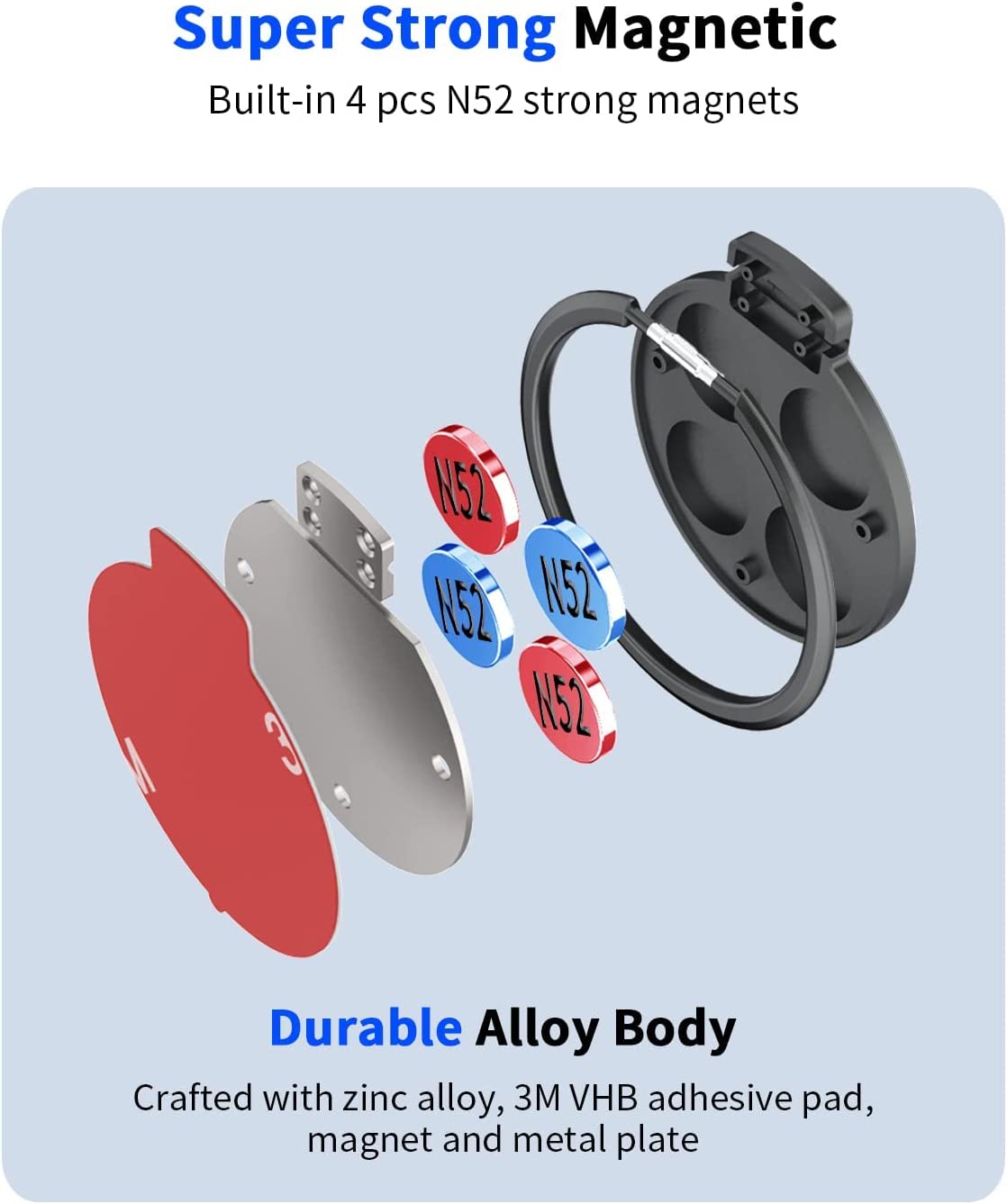 BELOMI Magnetic Phone Mount for Car Rear View Mirror, Auto Cell Phone Holder, 360 Degree Adjustable and Strong Magnet, Big Rear Mirrors Friendly, Fit All Mobile Phones and All Car