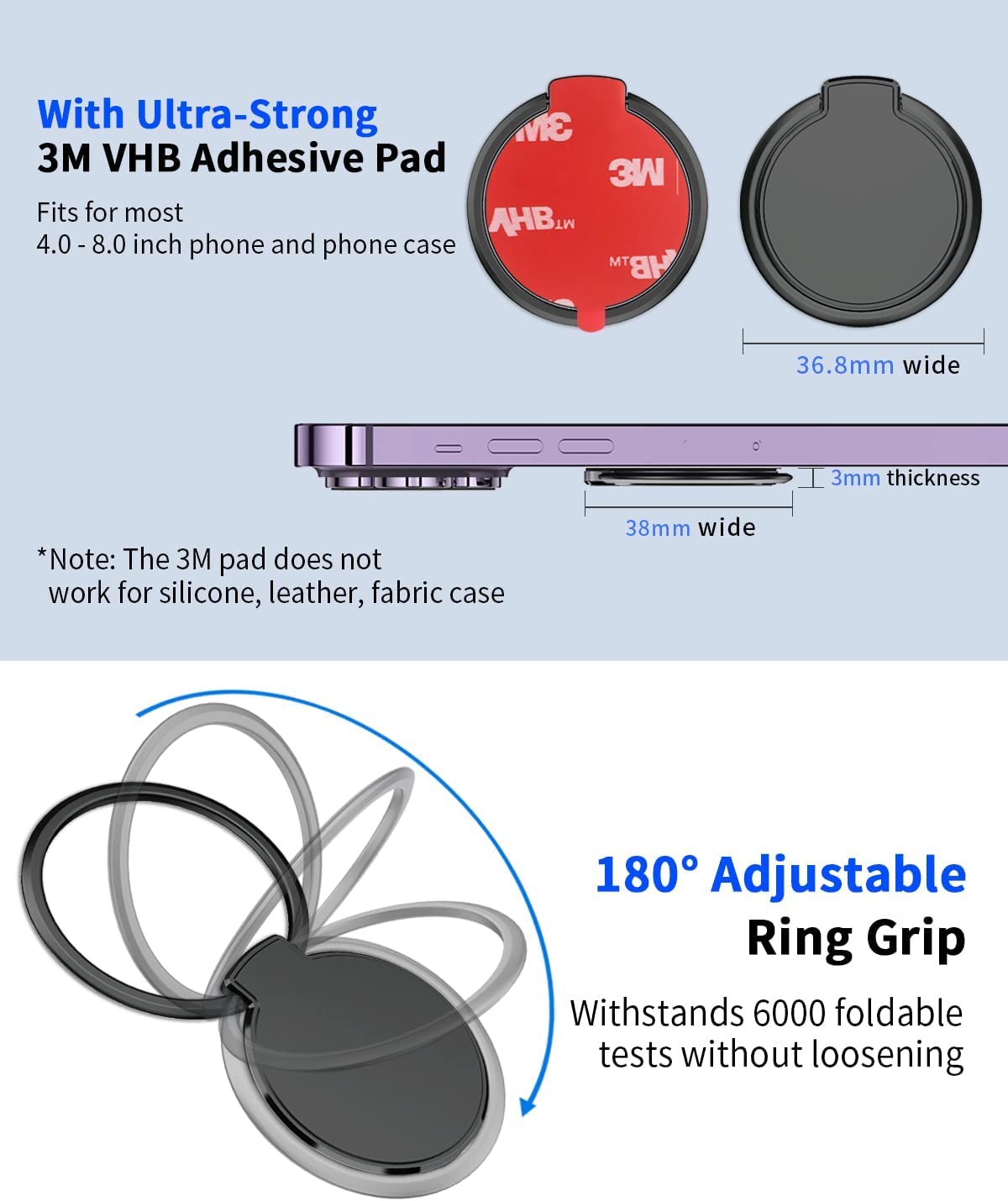 CHEEDAY Magnetic Phone Ring Holder Wall Mount [4 Strong Magnets] Gym Magnet Phone Finger Ring Grip Desk Stand Car Mount [with 2 Metal Plate] Compatible with iPhone 12 13 14 Pro Max, Android - Black
