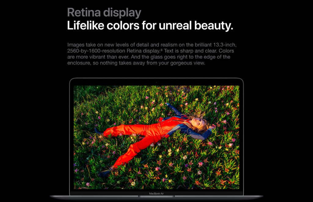 • Stunning Display – With a 13.3 inch Retina display, images come alive with new levels of realism. Text is sharp and clear, and colors are more vibrant.