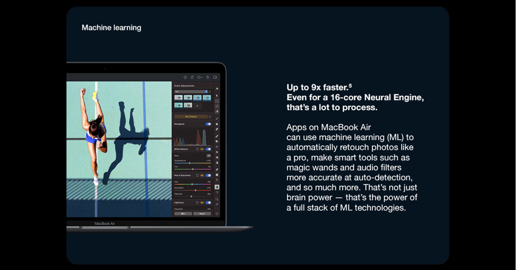 • Powerful Performance – Take on everything from professional-quality editing to action-packed gaming with ease. The Apple M1 chip with an 8-core CPU delivers up to 3.5x faster performance than the previous generation while using way less power.