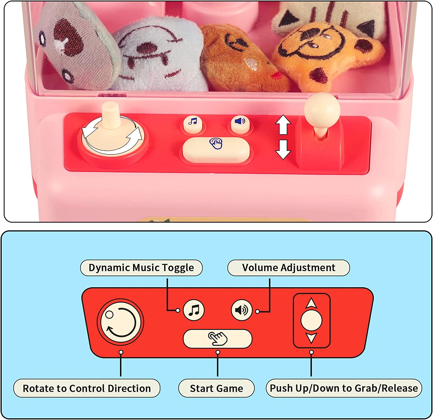 • 【Latest Mini Claw Machine】Our mini claw machine has 360° Joystick, Up/Down Joystick to grab or release, along with Music, Sound, and Light feature will create an authentic carnival atmosphere. Kids of all ages are drawn to crane games at supermarkets, carnivals, and fairs. Now you can now bring that fun to your home with our toy playset!