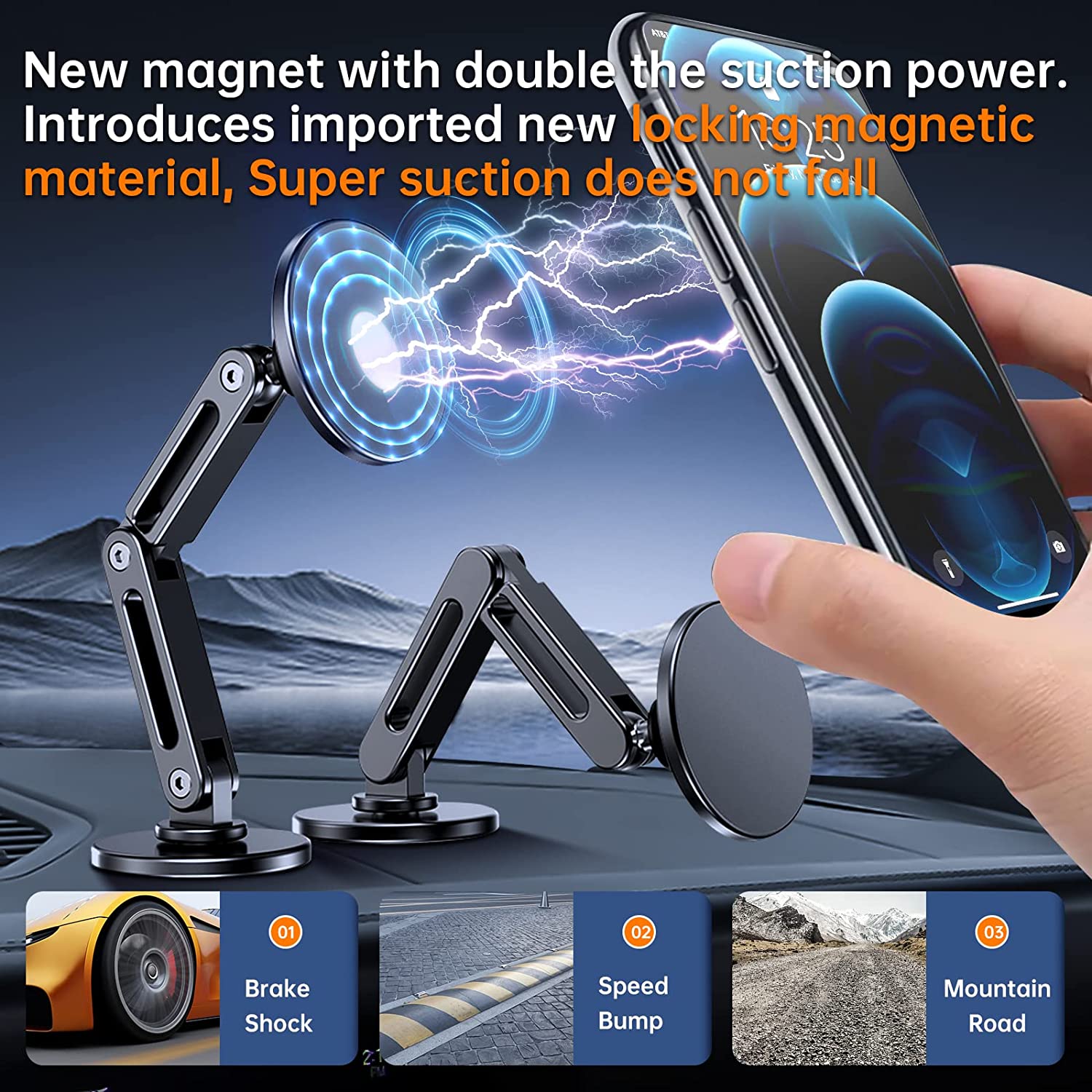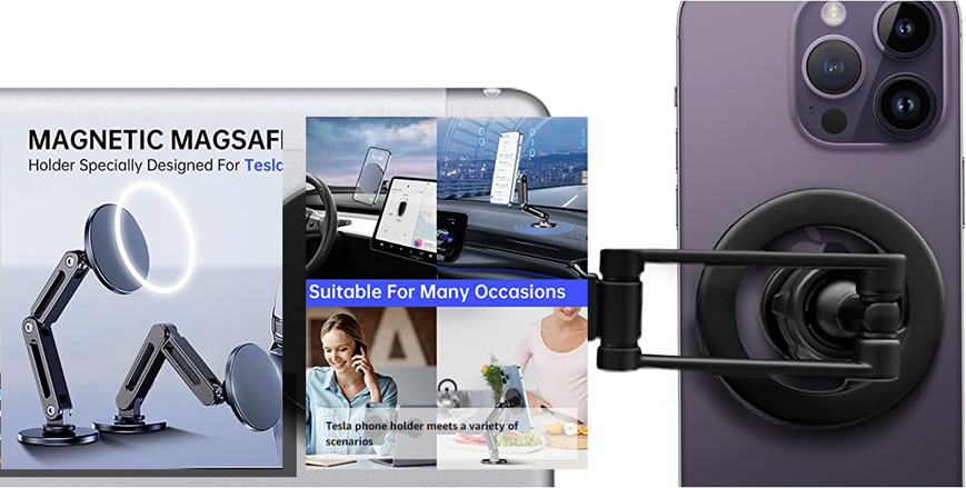 • 【Super Strong Magnetism】This tesla magsafe phone mount is equipped with 16 larger and stronger n52 magnets, Ensuring that your phone will not fall off while driving on any road. Suitable for magsafe phone mount for car, The enclosed magnetic field will not interfere with signal transmission, Allowing for uninterrupted calls and navigation.(Note: The car holder cannot wirelessly charge the phone.)