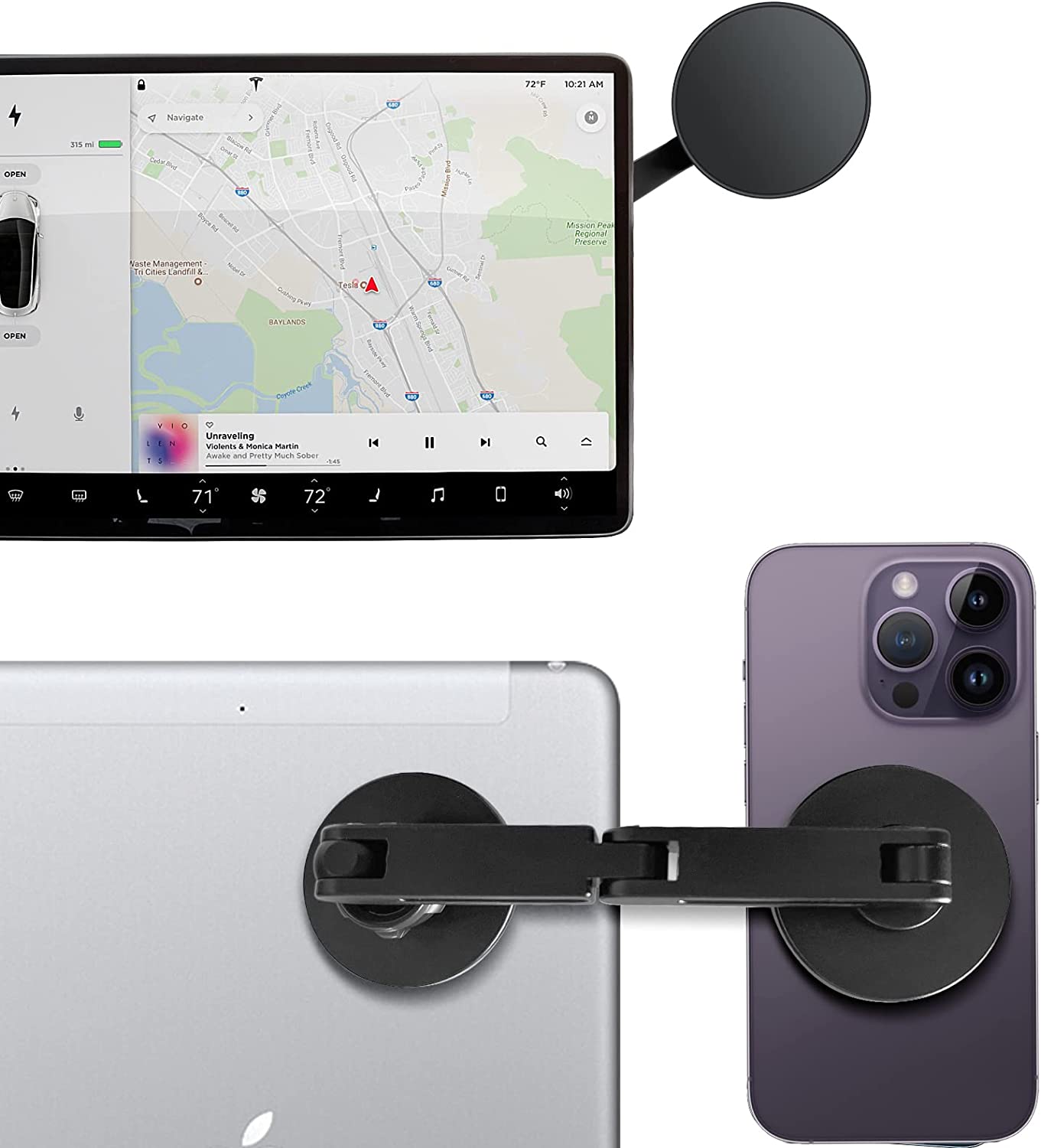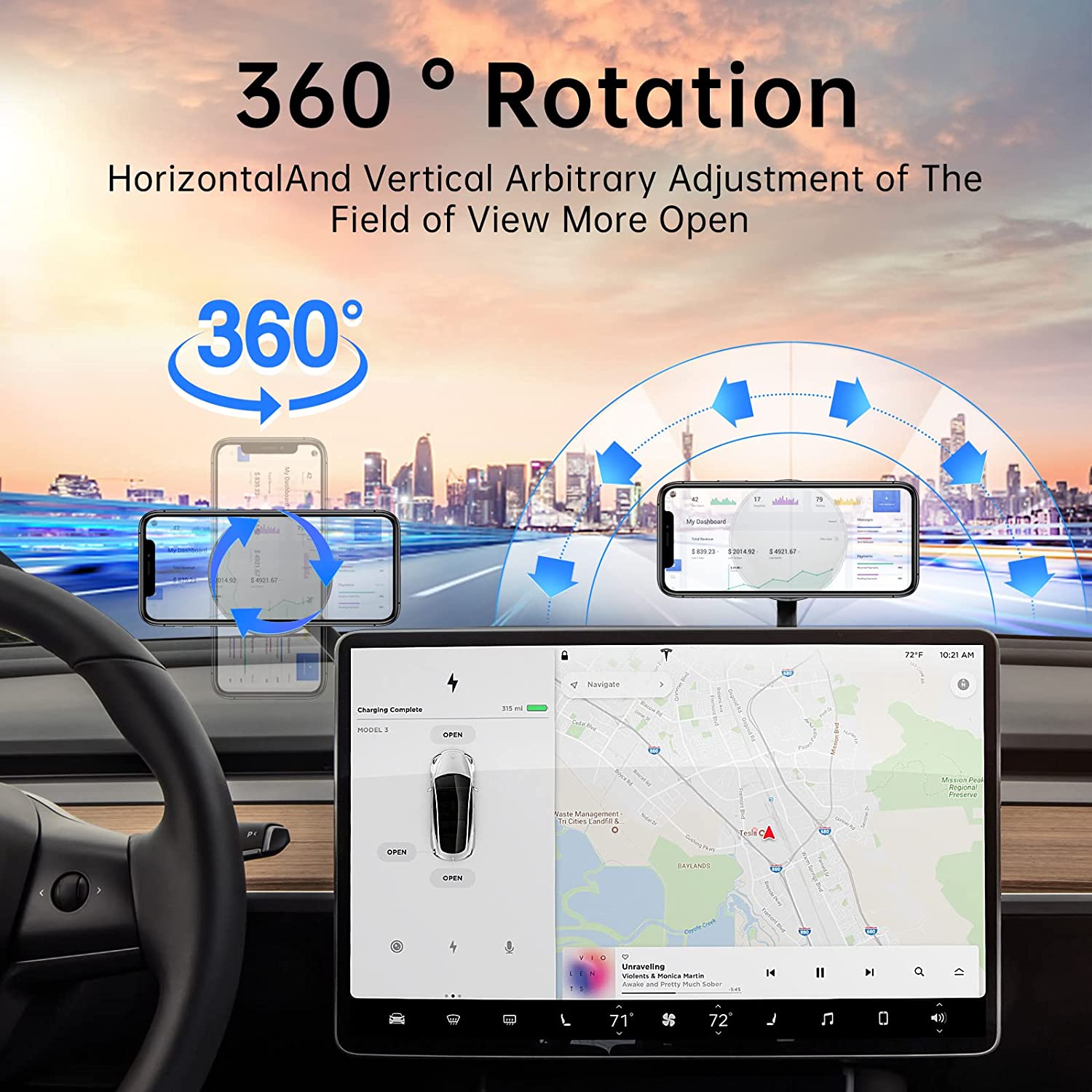 • 【More Mounting Options】This tesla iphone mount for tesla model 3 accessories and tesla model y accessories, Easy to rotate, Fold and hide, Horizontal and vertical adjustment, Fully adjustable design, 360-degree rotation, Suitable for your multi-angle use, And can be installed on the steering wheel/dashboard Multiple locations behind the panel/center console without obstructing the line of sight for safer navigation.