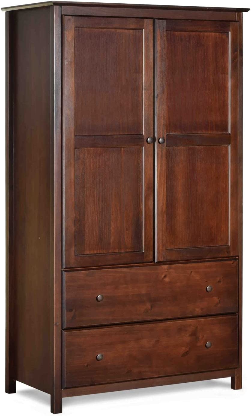HODEDAH IMPORT Hodedah 2 Door Wardrobe with Adjustable/Removable Shelves & Hanging Rod, Mahogany
