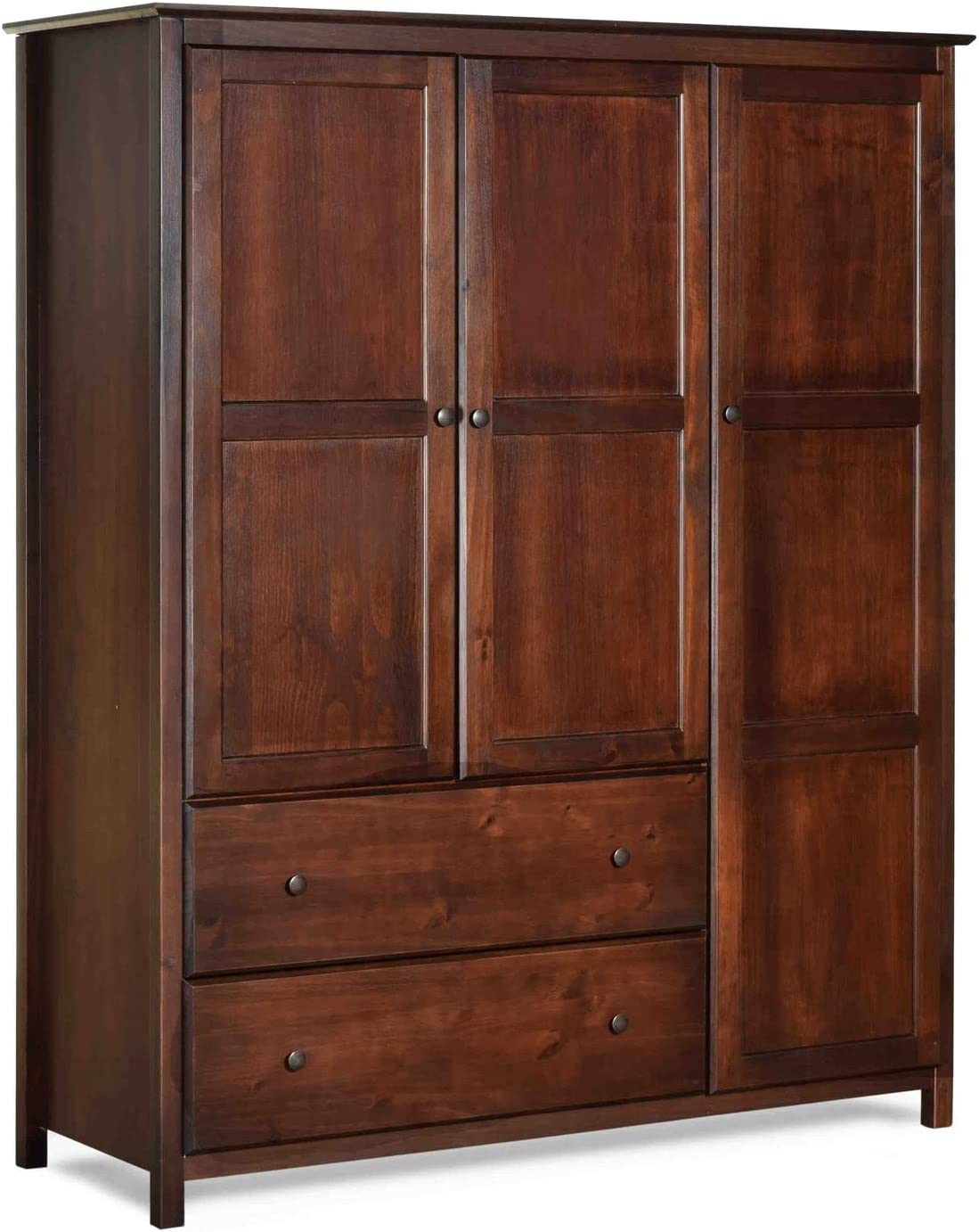 Grain Wood Furniture Shaker 3-Door Wardrobe, Cherry