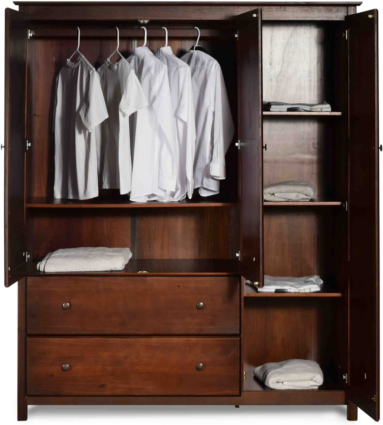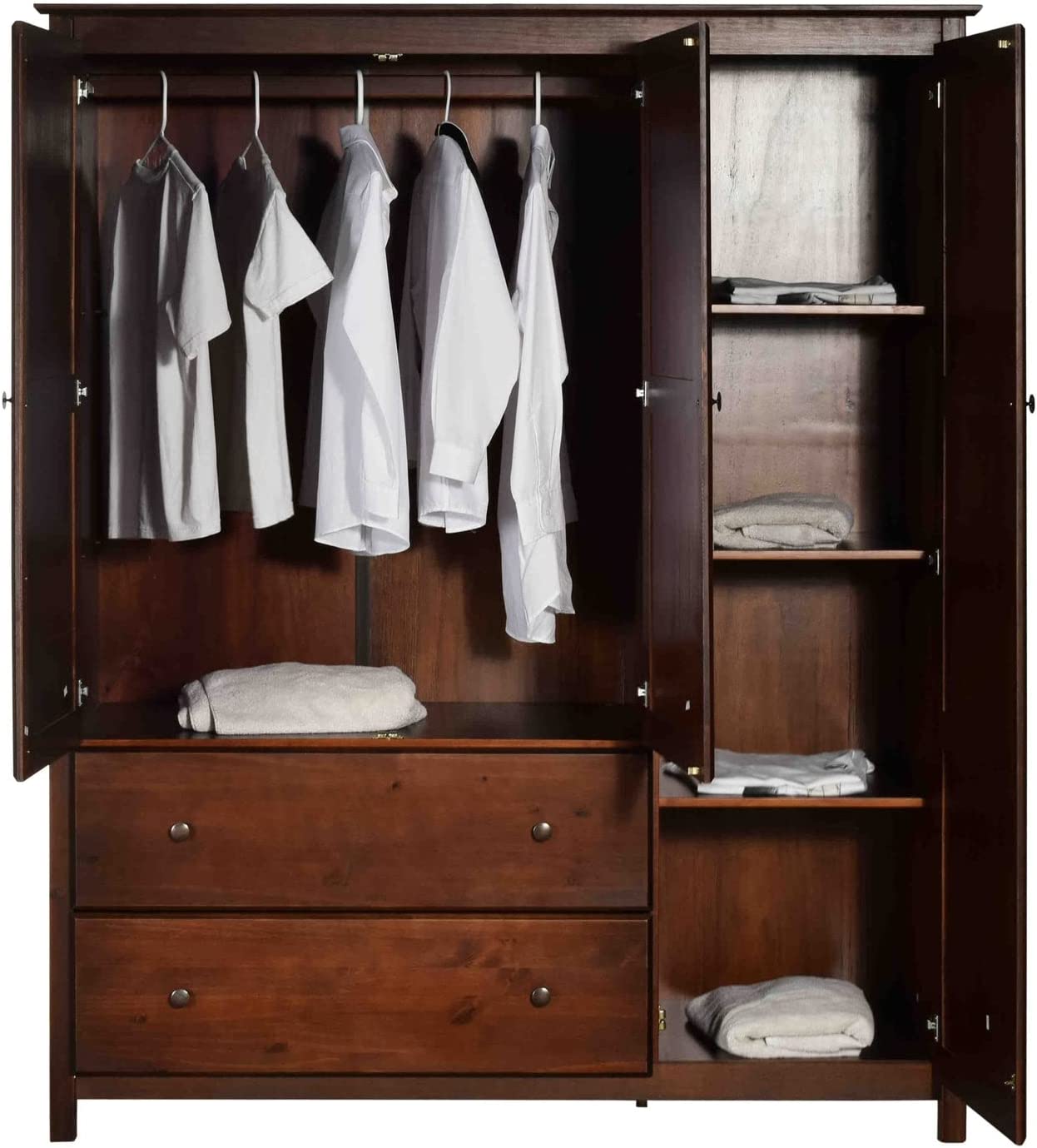 HODEDAH IMPORT Hodedah 2 Door Wardrobe with Adjustable/Removable Shelves & Hanging Rod, Mahogany