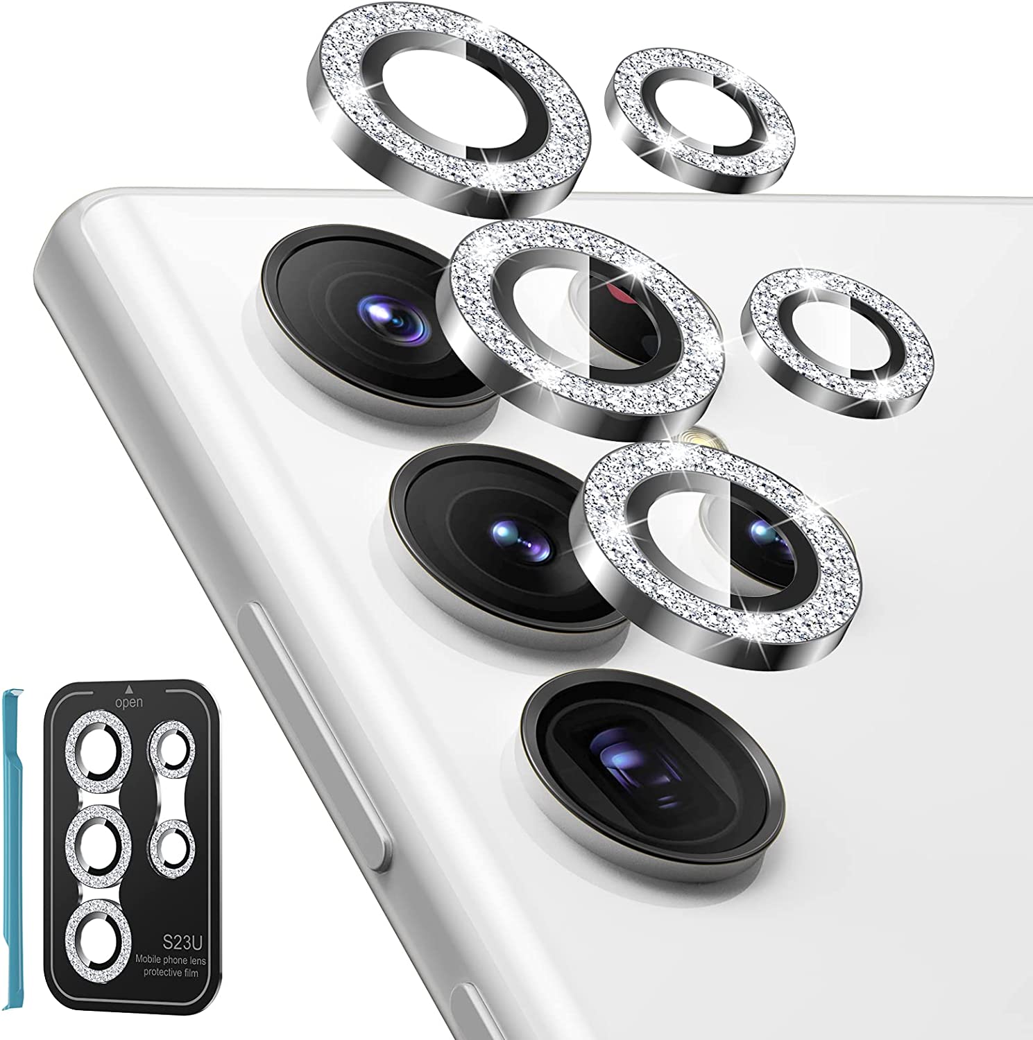 【S23 Ultra Camera Lens Protector】 This S23 Ultra camera lens protector used high-quality aluminum alloy metal and glass screen protector, fully protect your lens, effectively preventing the lens from scratched, dust and bumps. Restore the original color of the phone lens, looks as not installed.