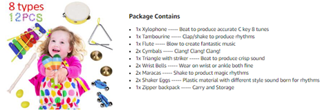 - Educational Rhythm Instruments Set - perfect inspirational toys toddler musical instruments to develop their rhythm and musical skills, boost their attention levels, memory, motor, creative and Interactive skills. Great percussion musical toys, toddler boy toys, toddler girl toys, kids birthday gift, Christmas gift.