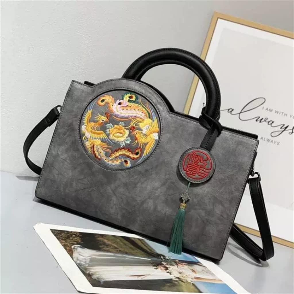 ZLXDP Winter Women's Tote Bag Chinese Style Retro Handbag Large Capacity Women's Shoulder Bag (Color : C, Size : 32(L)*24(H)*14(W) cm)