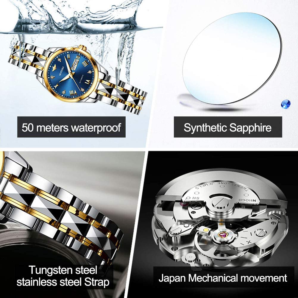 • ❤Automatic watch for women:Imported Japanese automatic mechanical movement, support manual and automatic winding. When wearing, it will automatically wind up with the swing of the arm, and the energy reserve is up to 50 hours or more, avoiding frequent manual winding.