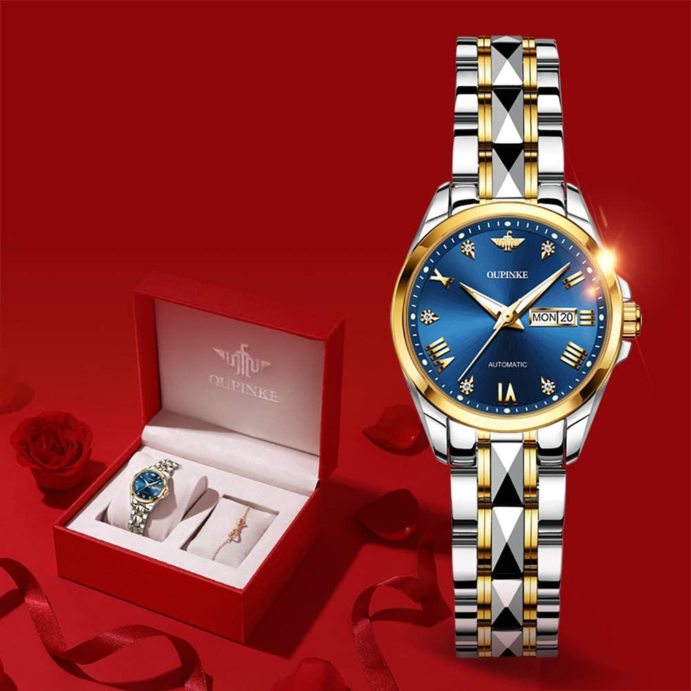 OUPINKE Swiss Brand Women Watch Automaitc Slef Winding Mechanical Fashion Bracelet Set Sapphire Crystal Dress Waterproof Ladies Wrist Watch