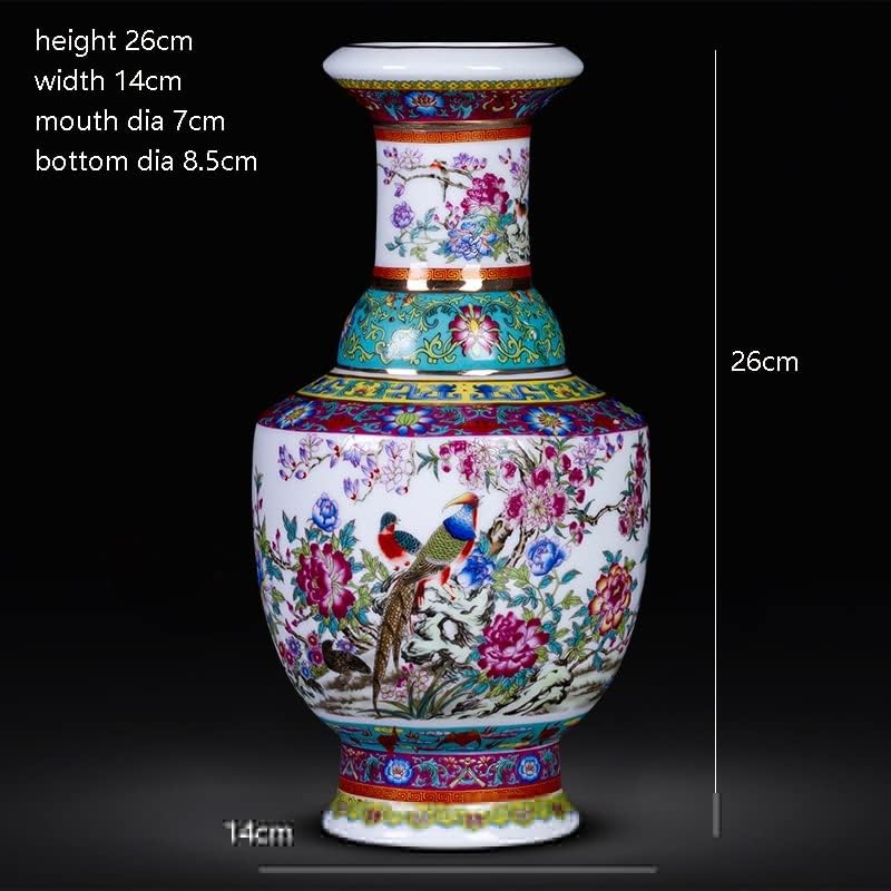 ZSEDP Jingdezhen Ceramic Antique Enamel Flower Vase Flower Arrangement Decoration Chinese Style Living Room
