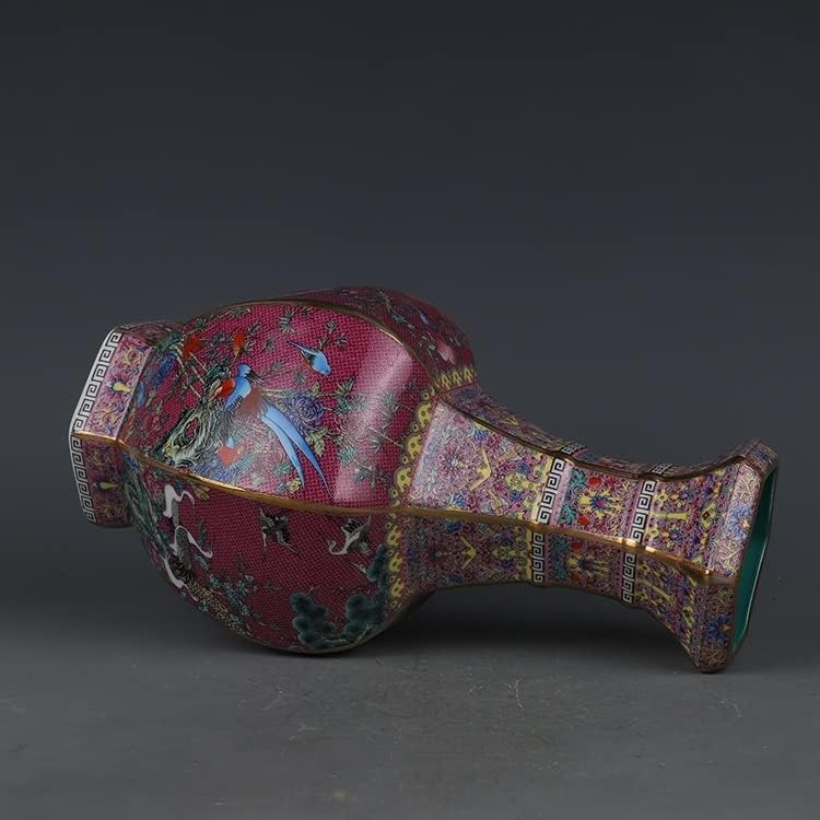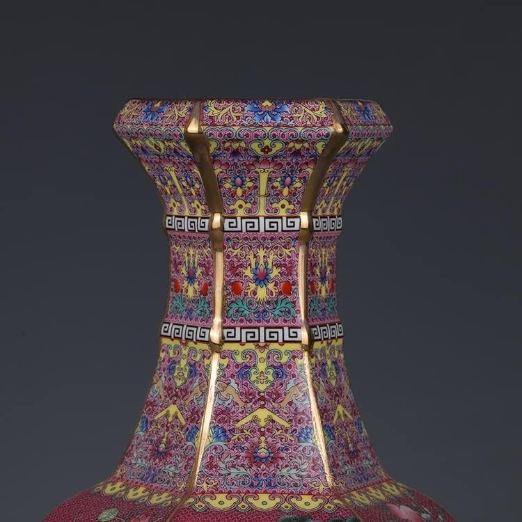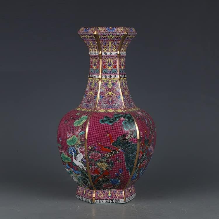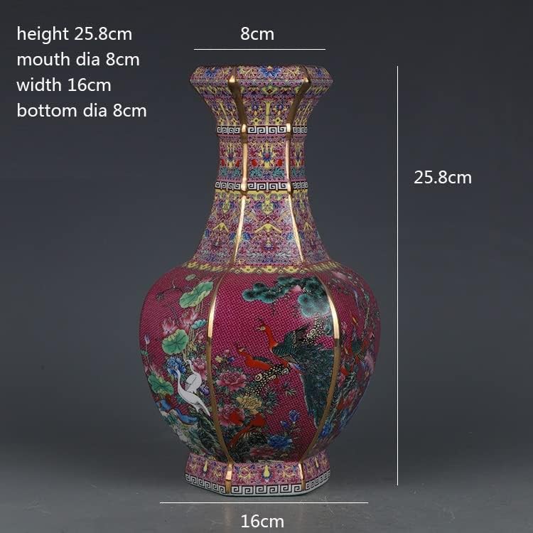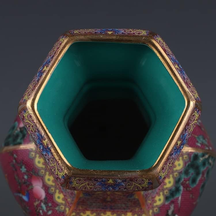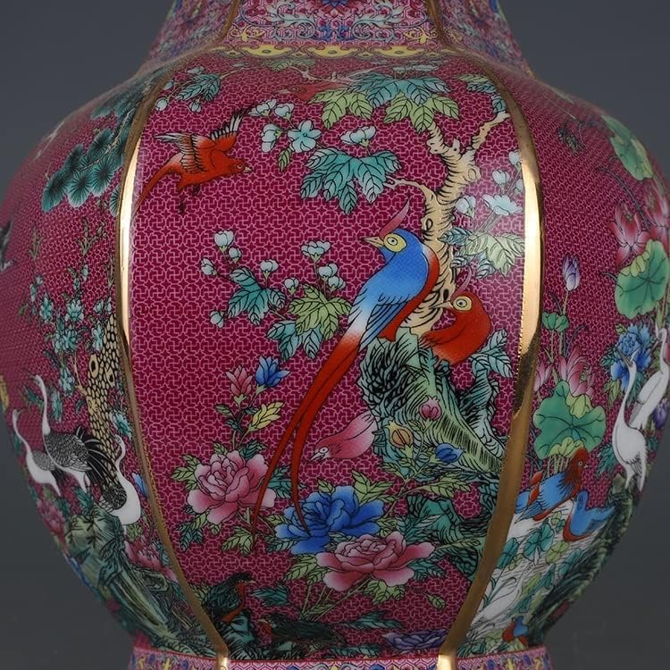 ZSEDP Enamel Red Flower and Bird Hexagonal Vase Antique Jingdezhen Porcelain Household Chinese Decoration