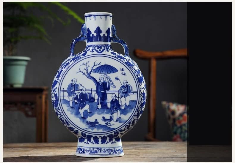 ZSEDP Jingdezhen Antique Blue and White Vase with Chinese Ancient Figures Pattern Double Ears Vase Ancient Porcelain
