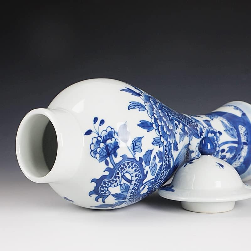 ZSEDP Handpainted Blue and White Antique Jar Porcelain Ceramic Storage Tank Decoration Tea Snacks Jar