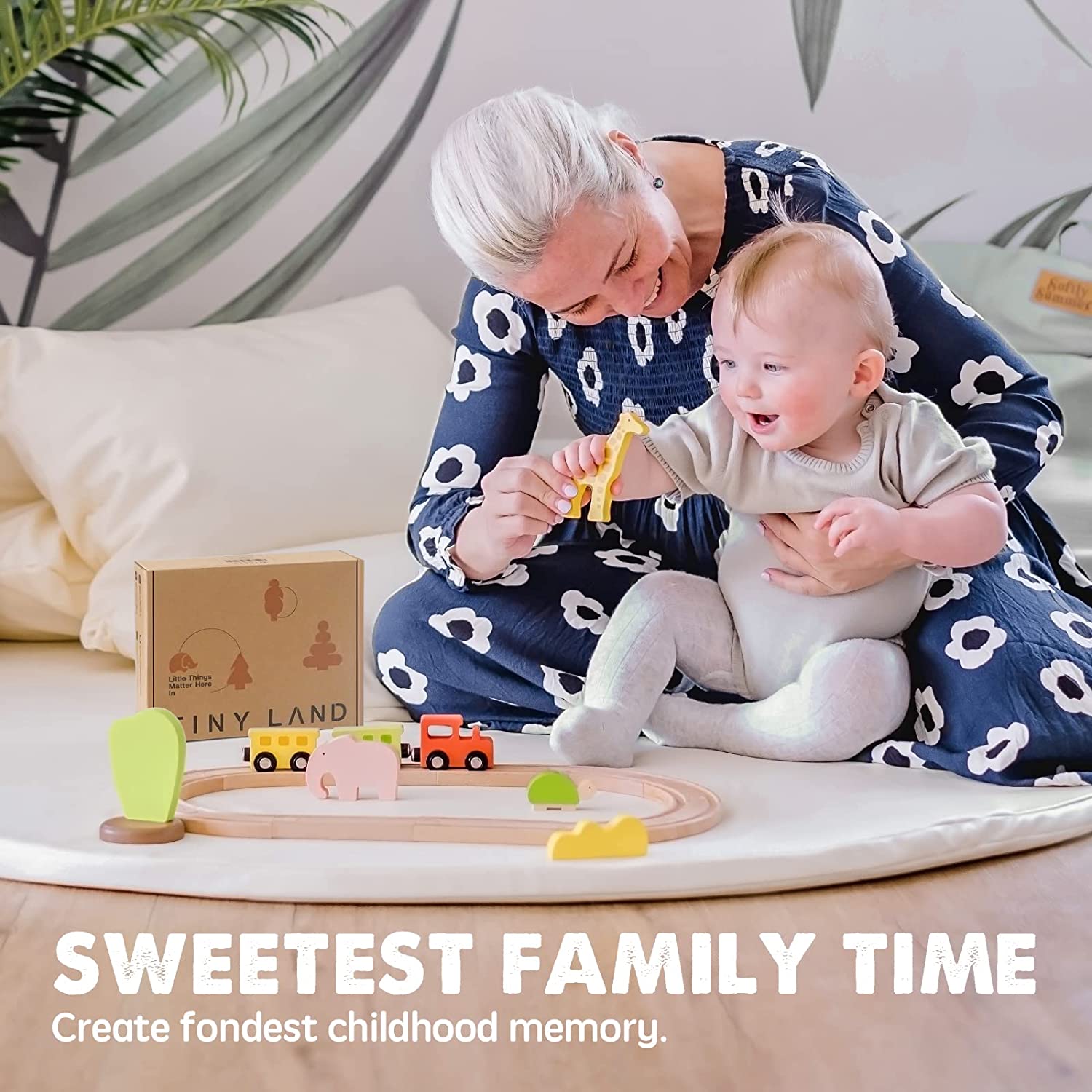 Toddler Toys Wooden Train Set for Toddler with Train Tracks, Train Toys Toddler Train Set for 18 Month 1 2 3 4 Year Old Boys and Girls, Wooden Train Track Fits Brio/Thomas/Melissa and Doug