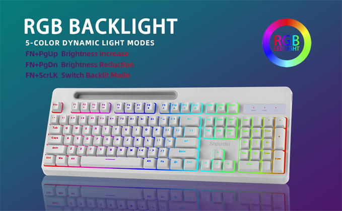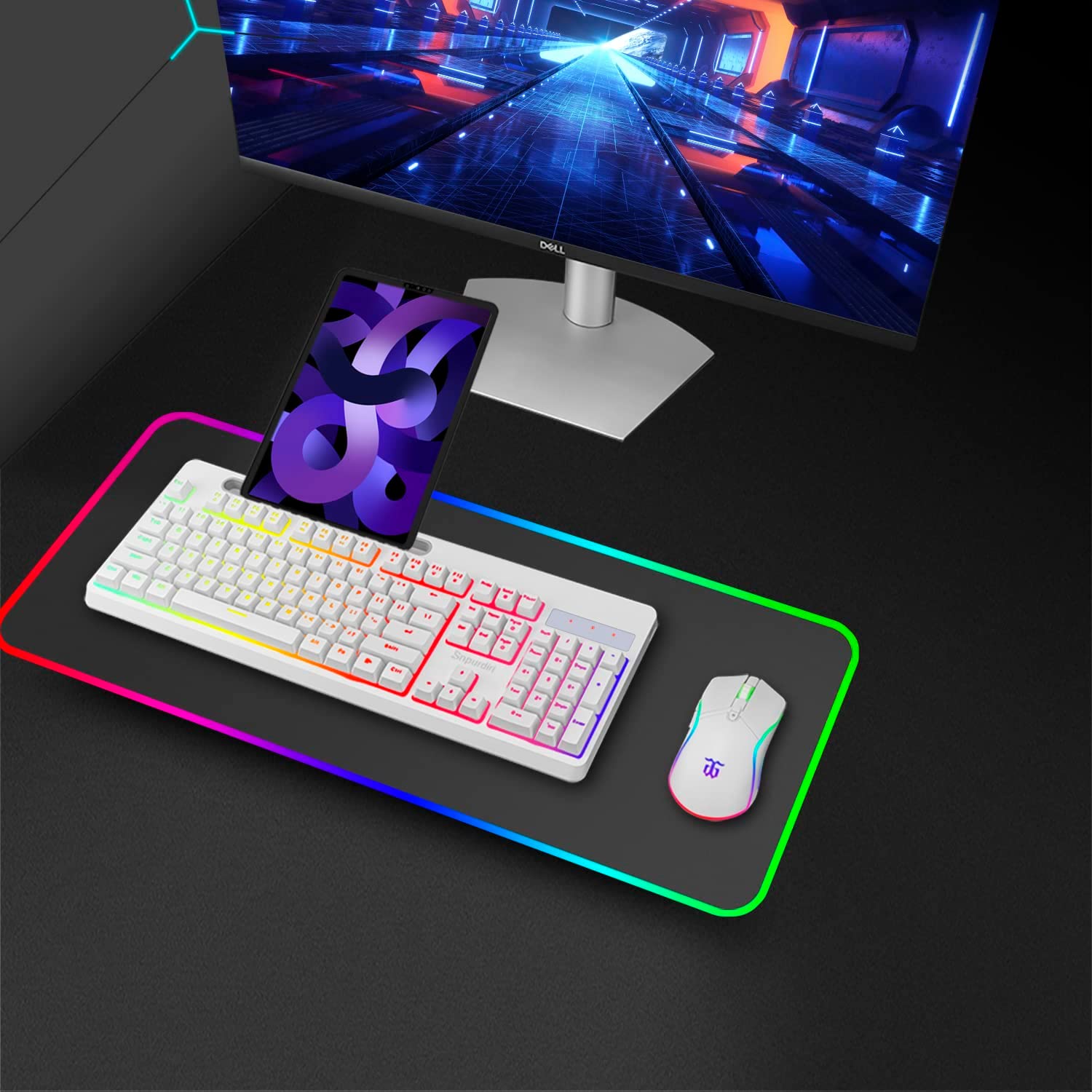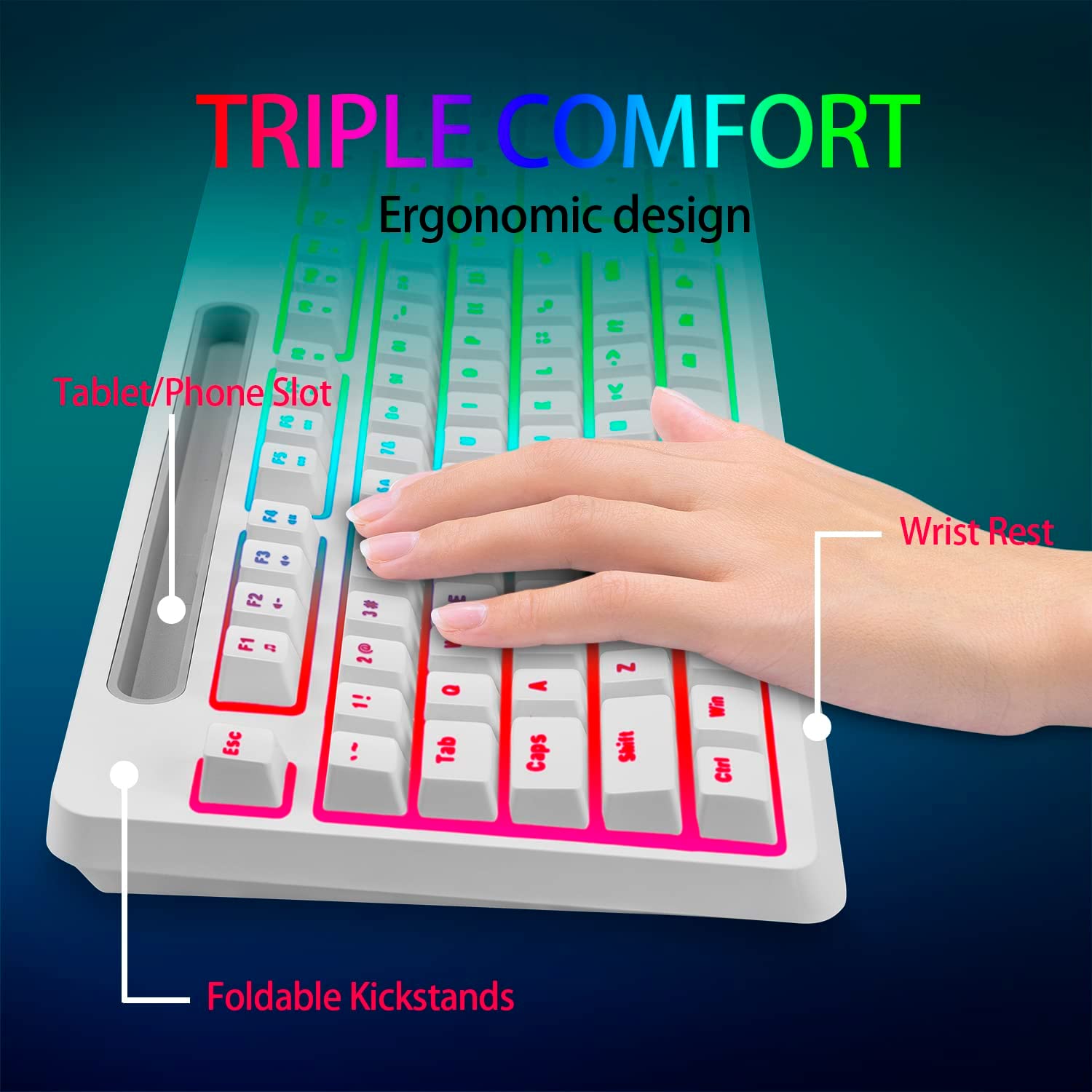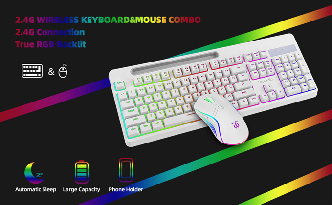 Wireless Gaming Keyboard and Mouse Combo,Snpurdiri True RGB Rechargeable Full Size Anti-ghosting Keyboard with Tablet/Phone Bracket, RGB Mouse,Long Battery Life for Gaming, Office(White)