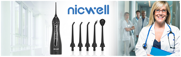 POWERFUL BATTERY LIFE & IPX7 WATERPROOF: With powerful and environmental lithium battery, fully charged need 4 hours and used continuously for about 21 days. Come with USB Cable(Adapter Not Included) applicable to a variety of charging equipements such as power bank, computer, laptop.... With double-sealing rings, Nicwell oral irrigator prevent water leakage reliably, can use for shower in the bathroom and it's washable to clean