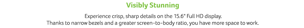• Visibly Stunning: Experience sharp details and crisp colors on the 15.6" Full HD display with 82.58% screen-to-body, 16:9 aspect ratio and narrow bezels