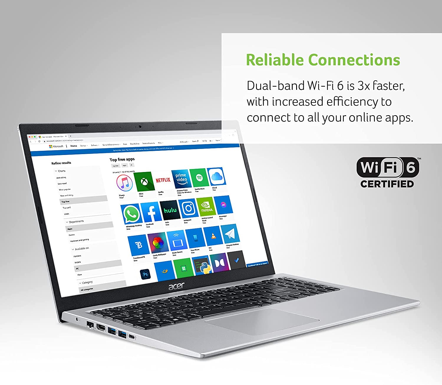 It's all about the innovation. Acer products are designed for your needs and accessibility with powerful features fit for your lifestyle. The Aspire 5 packs a lot of power into the portable design to suit the multi-tasking needs of you and your family. The powerful 11th Gen Intel Core i3 processor is great for light gaming, productivity, and work tasks. Enjoy photo and video editing on the color-rich 15.6-inch Full HD display with Intel UHD Graphics. You can turn this Acer Aspire 5 into a virtual meeting room with an HD webcam and dual built-in microphones using Acer Purified.Voice Technology to carry your conversation clearly. Whether video chatting, streaming entertainment, or working in the home office, you'll stay connected to your network with dual-band Wi-Fi 6 working intelligently with your router to increase network efficiency. An ergonomic lifted keyboard makes working on this Acer Aspire 5 laptop more comfortable. (NX.AASAA.002).