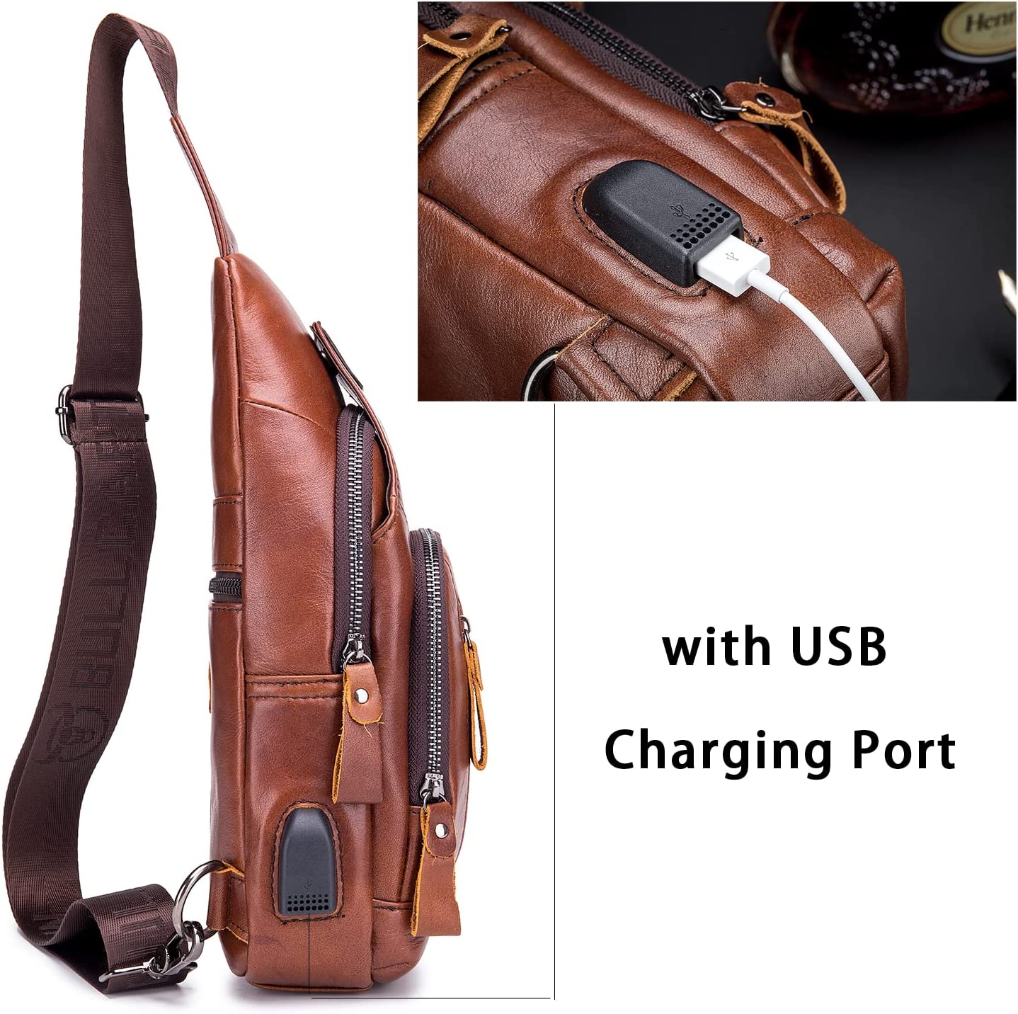 LUKZIJAES Genuine Leather Sling Bag for Men Crossbody Shoulder Chest Pack Hiking Casual Daypack Outdoor Travel Backpack (#1-Brown)