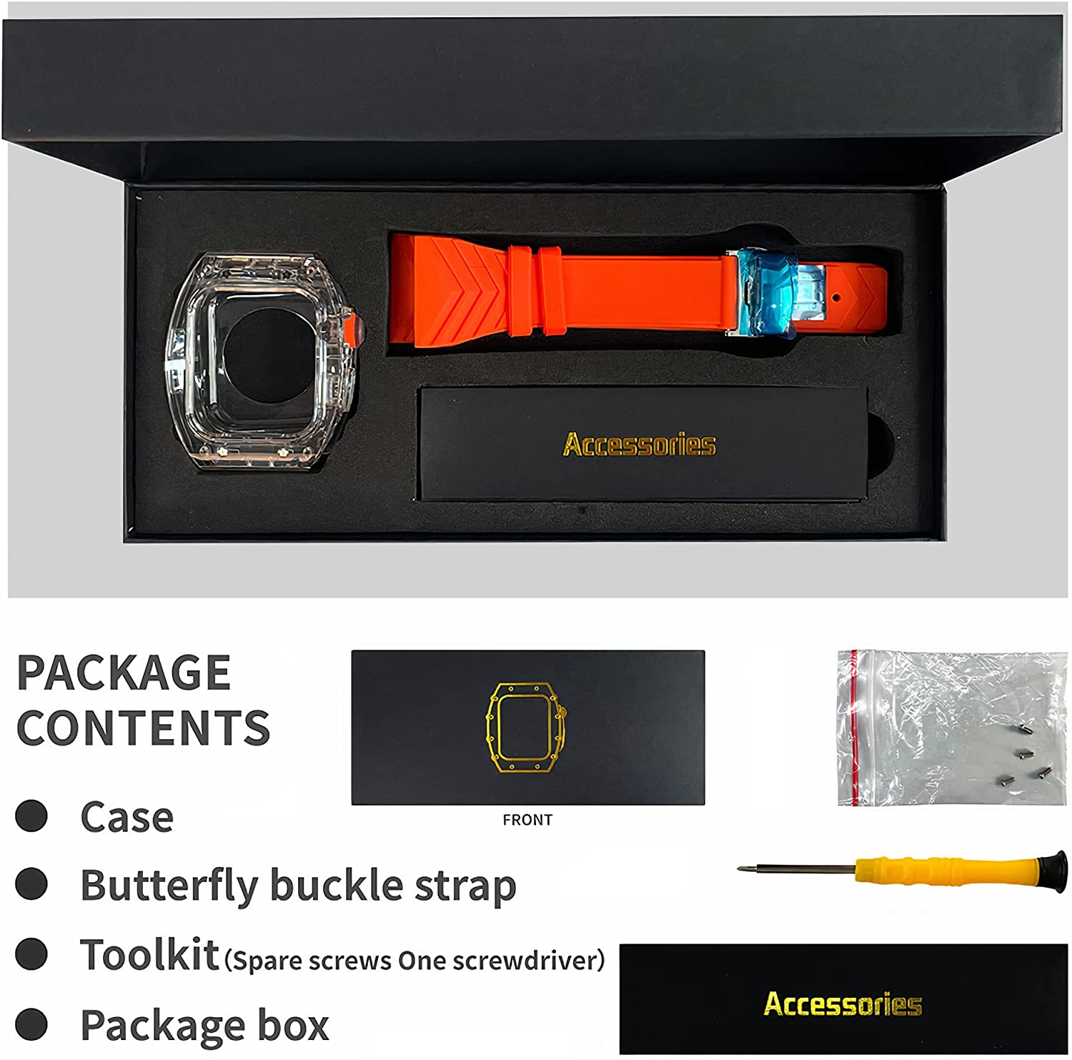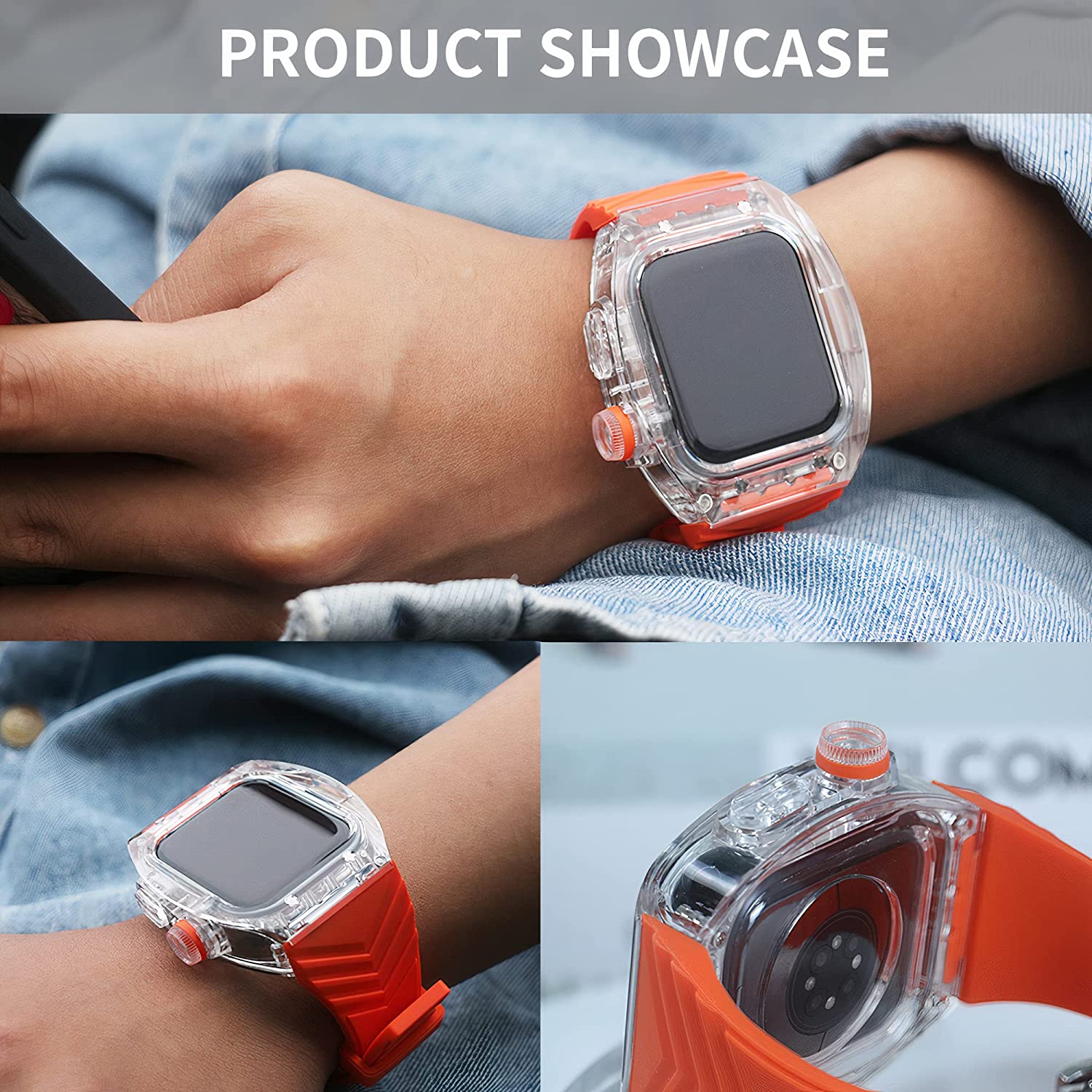 WITEBOCS Luxury Transparent Hard Case for Apple Watch Series 4 5 6 7 8 & SE - 44mm or 45mm, Designer Silicone Band, Military Grade Protection with Rugged Bumper and Full Coverage, Lightweight and Crys