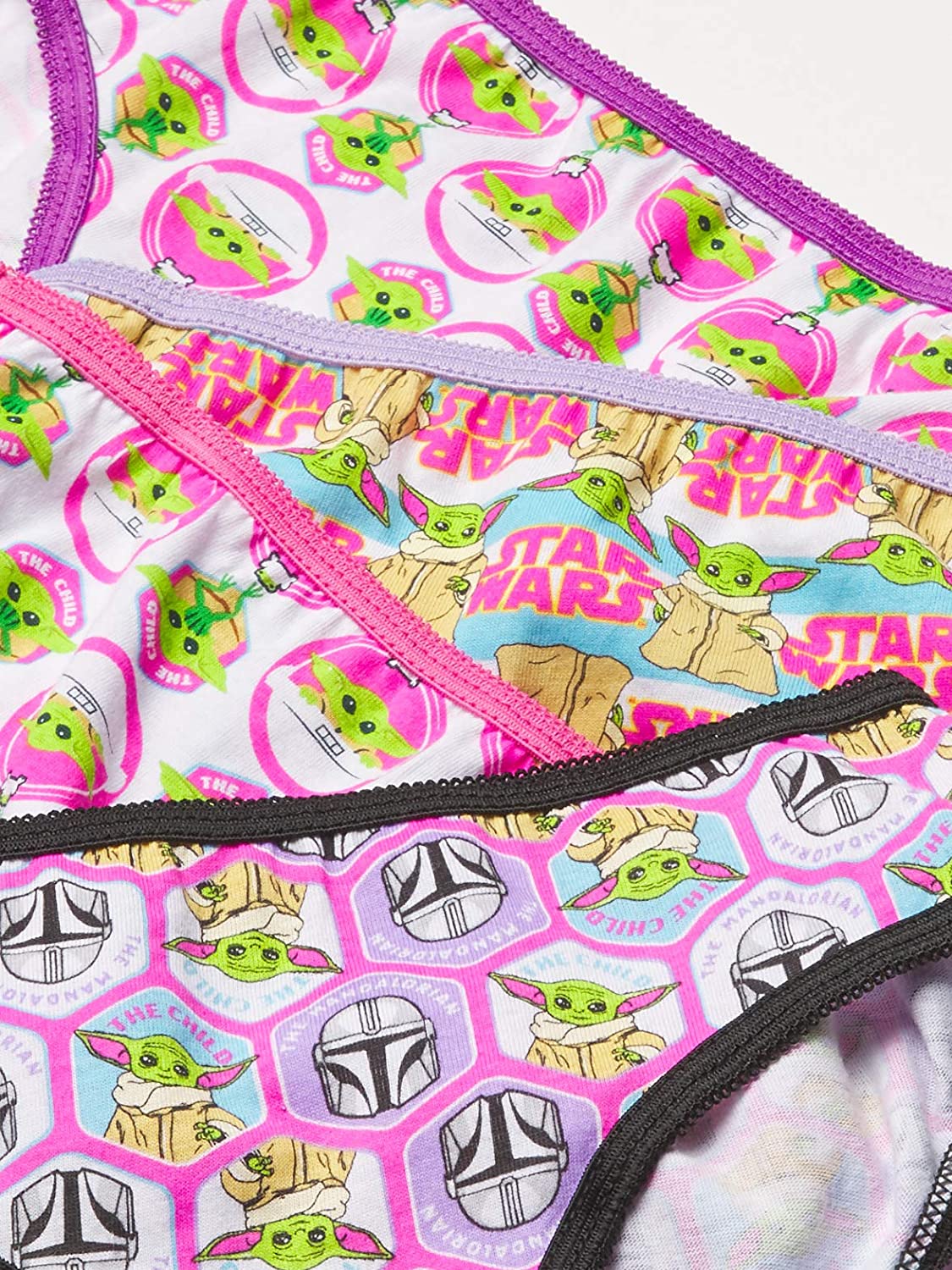 STAR WARS Baby Yoda Mandalorian Girls' 100% Cotton Underwear Available in 7-Pack and 10-Pack, Sizes 4, 6, and 8