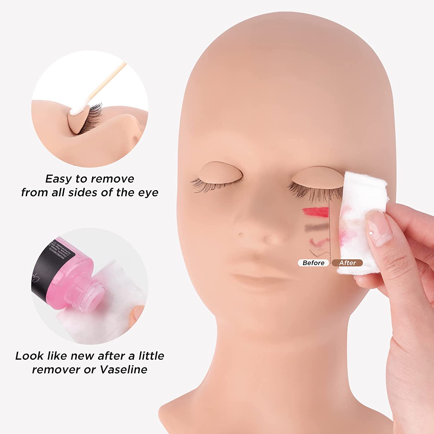 ✔️FLEXIBLE AND SOFT: The eyelash mannequin head is made of high quality silicone to prolong its service life. No odor. It is elastic, but not easily deformed. Feels like human skin, smooth, soft and elastic.The eyelids are similar to the human eyelids, providing with 3D effect, giving lash artists a more realistic operating environment.