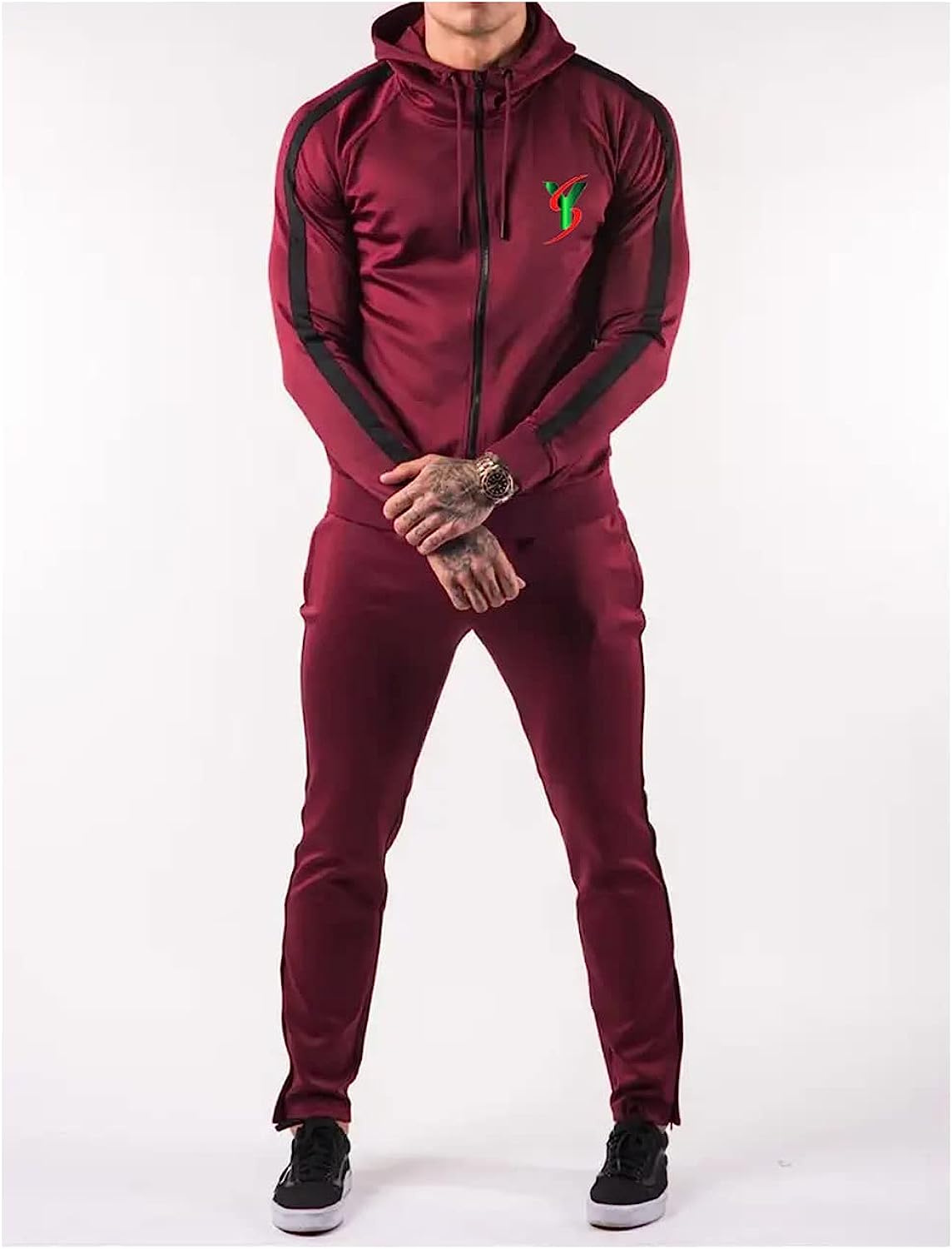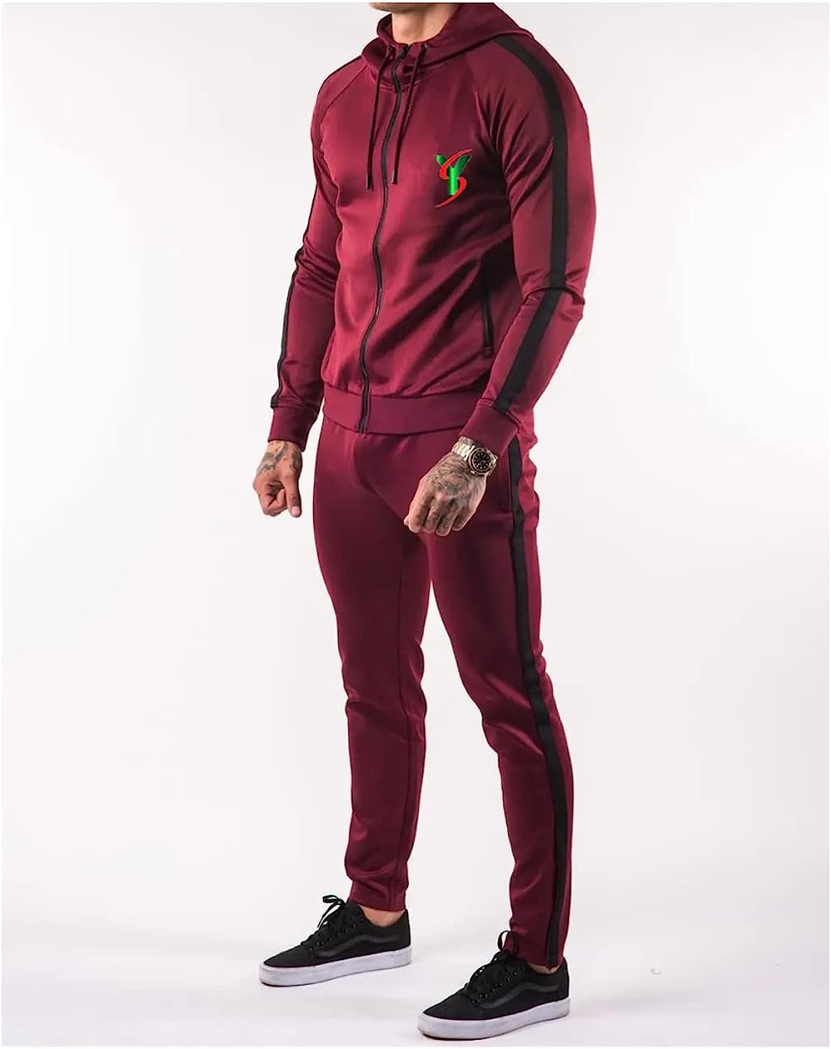 Tracksuits for Men Side Strip Fashionable Sweat suit Men's Tracksuit Jogging Suit Sportswear with Full Zip