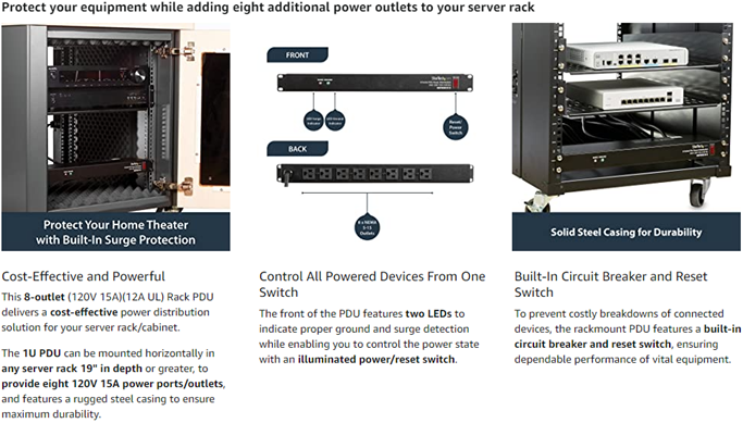 • PROTECTS YOUR EQUIPMENT: This rack mountable 8-outlet (120V) power strip features a built-in circuit breaker and reset switch, ensuring a dependable performance of your networking equipment