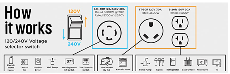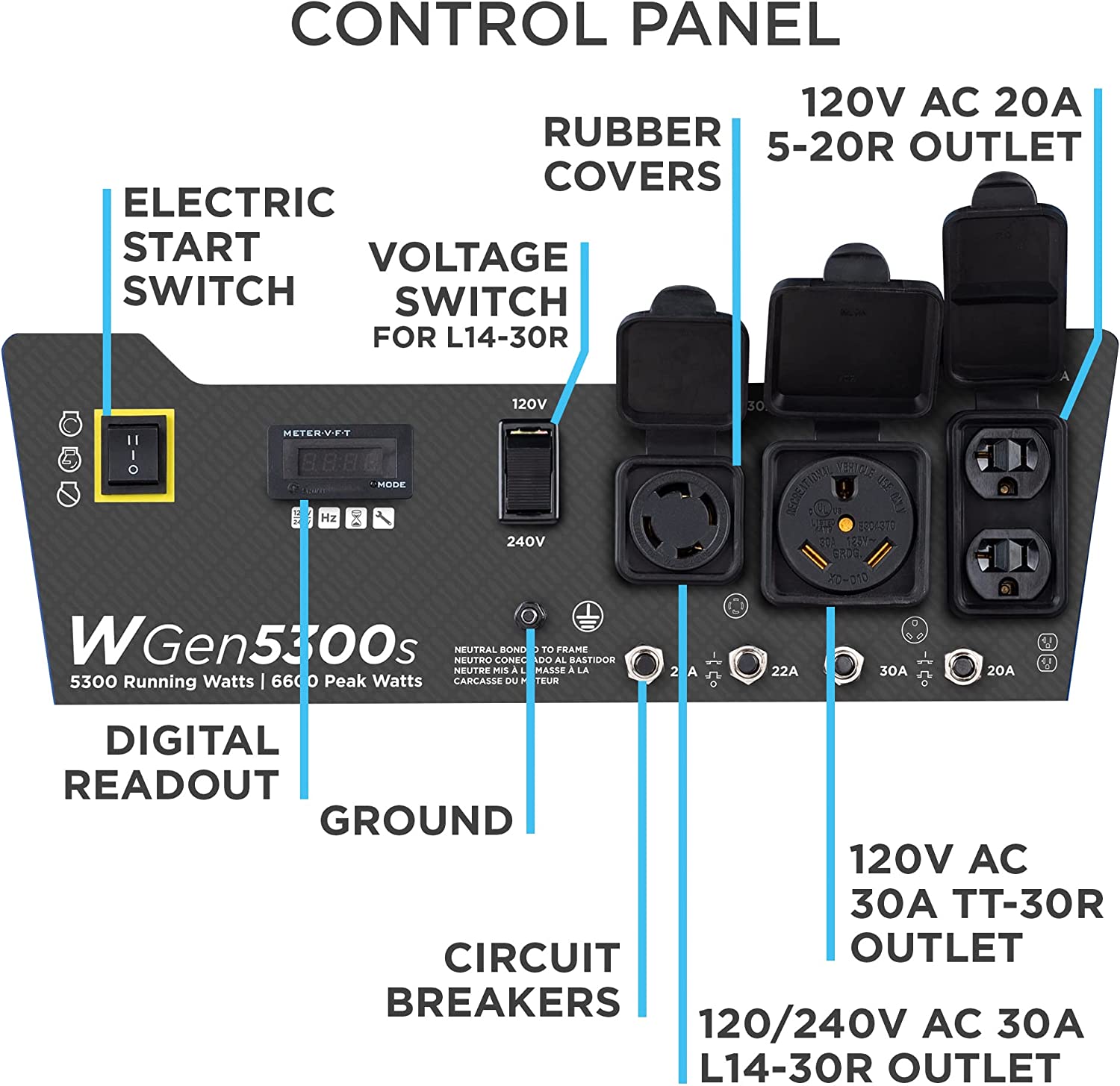 | Model Name | WGen5300s Portable Generator with Electric Start and 120/240 Volt Selector |