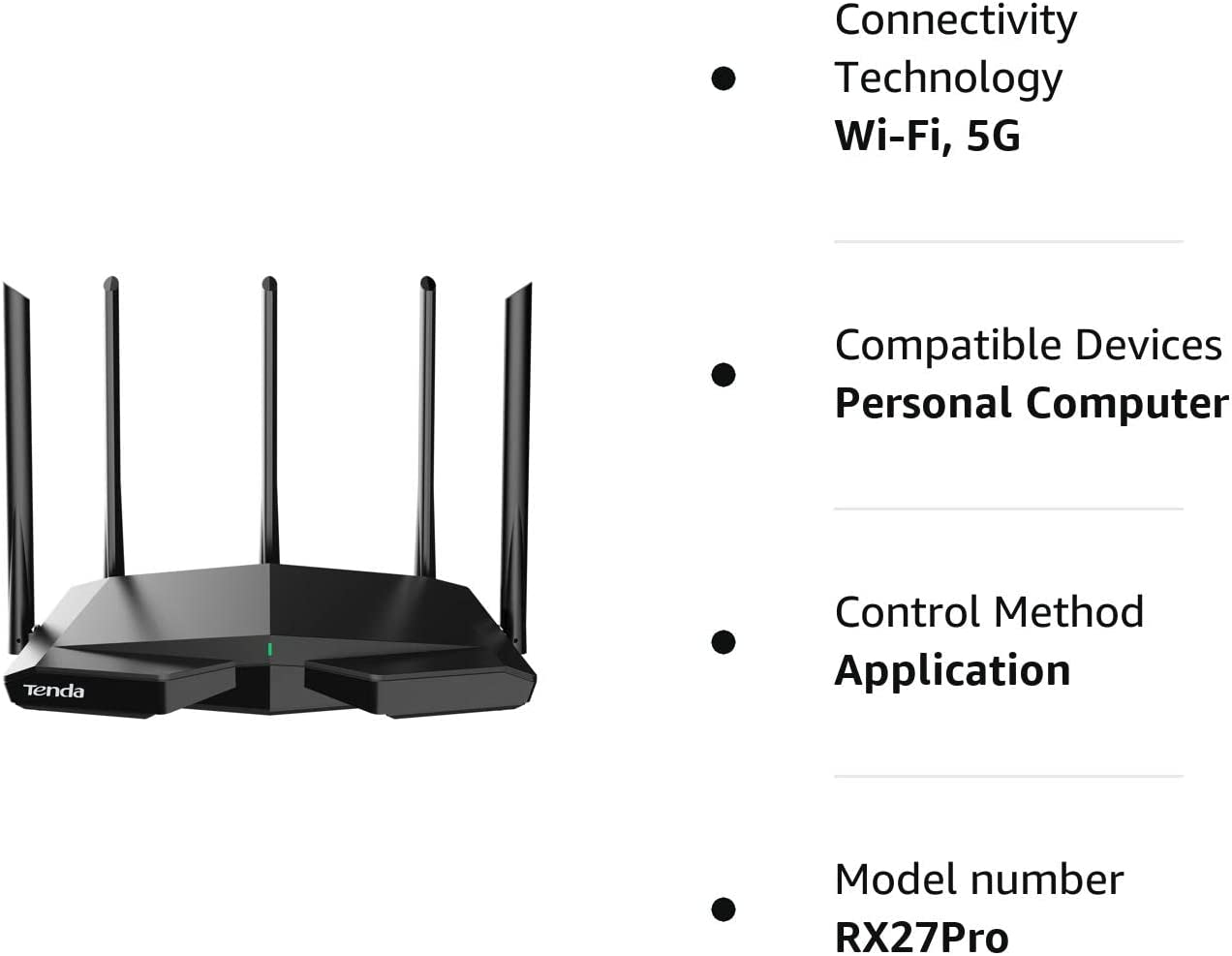Tenda AXE5700 Smart WiFi 6E Router, Tri-Band Gigabit Wireless Internet WiFi 6E Router, Best WiFi Router for Gaming and VR, OneMesh&VPN Router, AX Router for 5 *6dBi high-gain antennas, RX27Pro(Black)