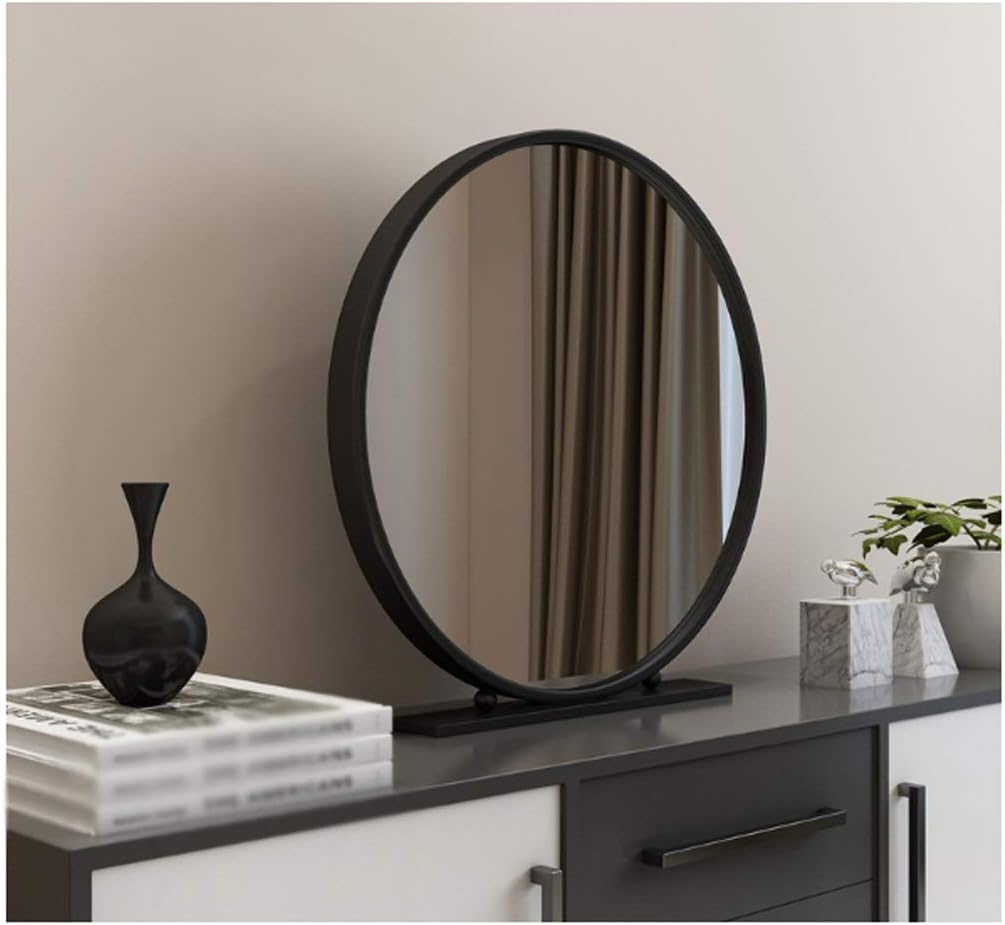 DSHGDJF Large Bathroom Round Mirror, Antique Decorative Mirror in Dining Room and Living Room, Metal Black Round Mirror (Size : 50cm)