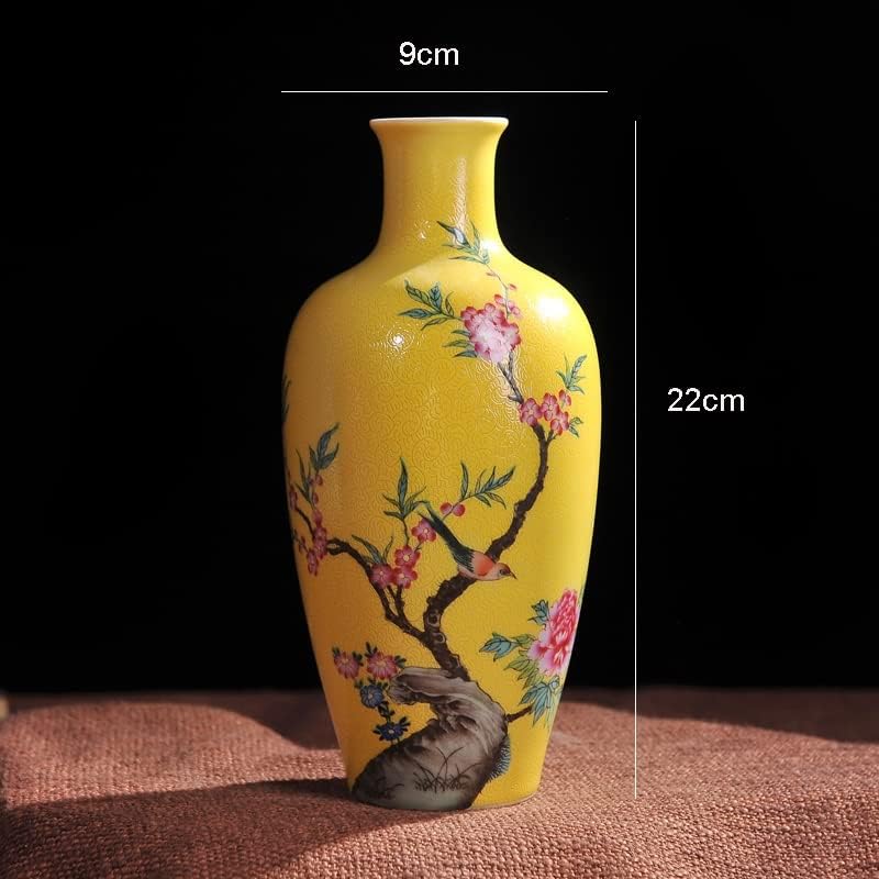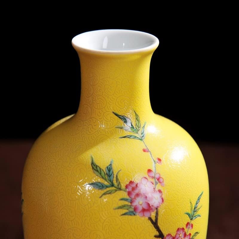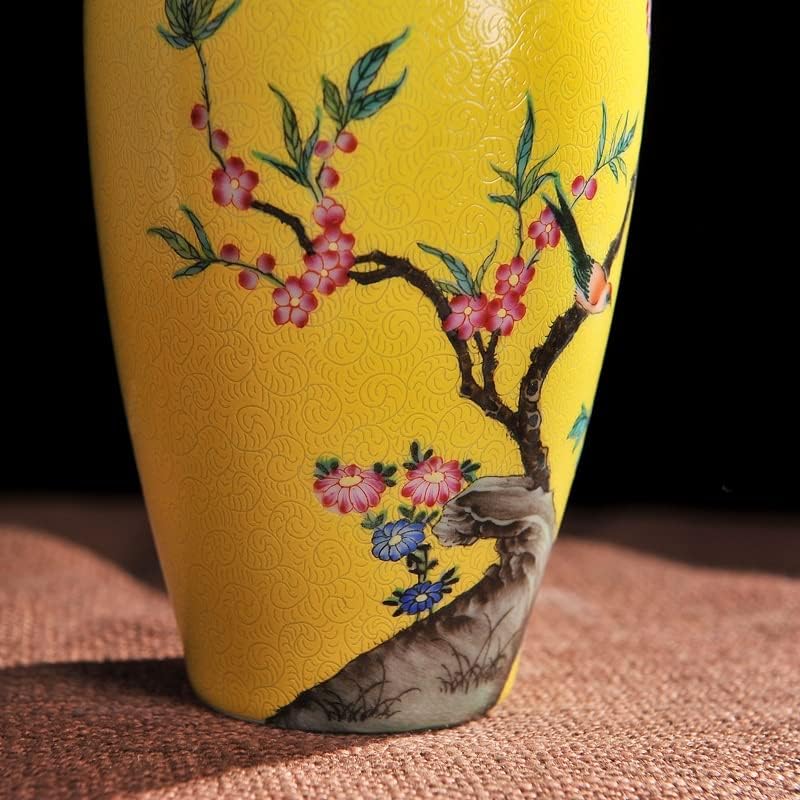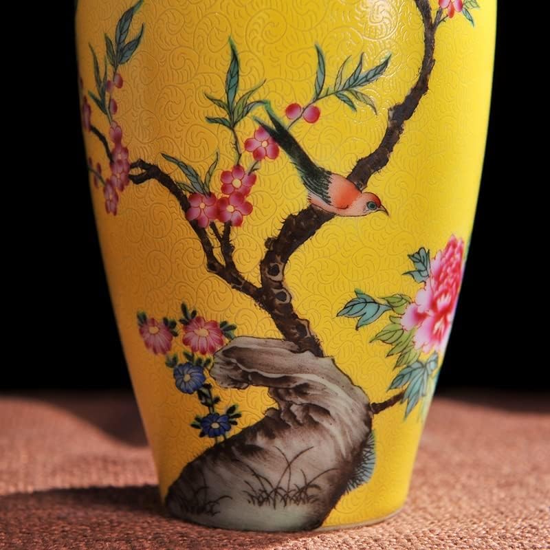 Boge Antique Yellow Color Glazed Porcelain Handpainted Flowers Birds Vases Household Furnishing Articles Porcelain Vase