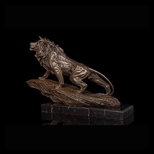 LUKEO Antique Bronze Casting Animal Statue Sculpture Wild Animal Roaring Lion Figurines for Indoor Decoration