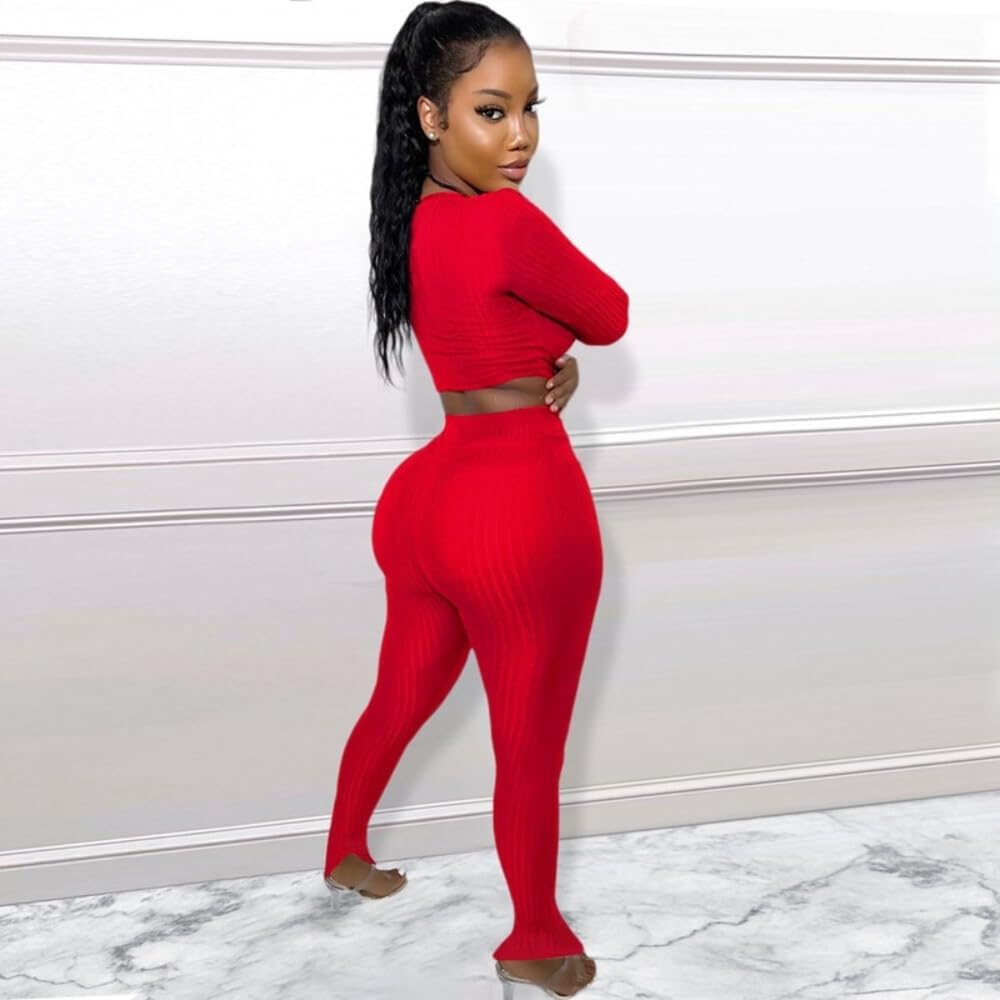 QueenLine 10pcs Wholesale Items for Business In Bulk Clothes Solid Knit Ribbed Two Piece Sets Women Fall Outfits Crop Top + Leggings Tracksuit Red S